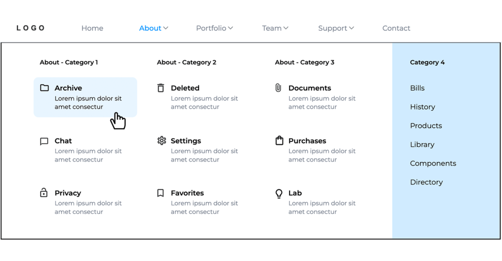 - Hindari terlalu banyak dropdown menu yang dalam, maksimal 2–3 level.